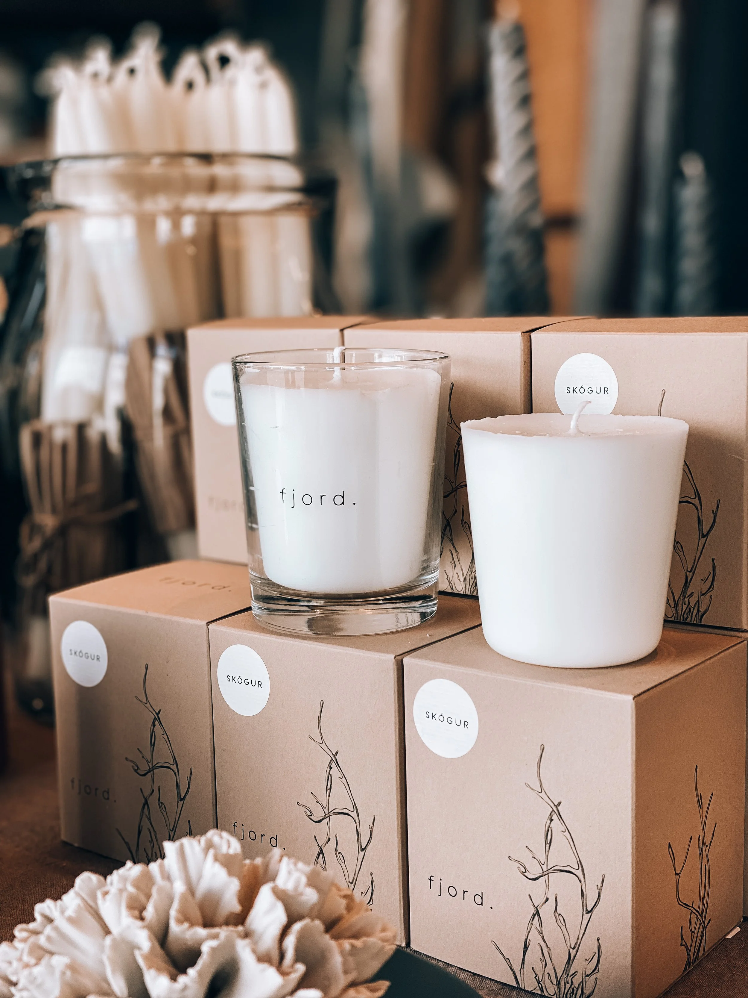 Natural soaps, home fragrances, candles, as well as handmade ceramic cups and face cloths available for sale at Kalt Concept Store in Hjalteyri. Contact us for more details.